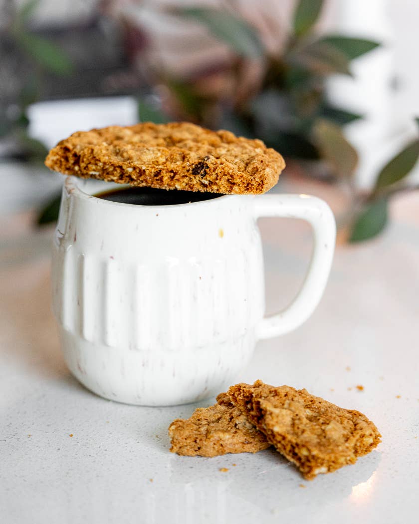 These cookies are crispy ~ toasted to achieve almost a butterscotchy background flavor and also makes for longer shelf life. People LOVE these !! Great in gift baskets. Great for coffee shop dunkin' !